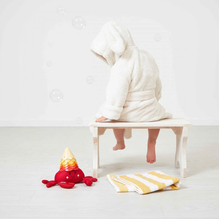 Vermaak badvriendje Bernard en laat je kind zichzelf tegelijkertijd wassen. Perfect voor kleine handjes. In bad gaan wordt een nog groter feest dan het al is. Bouw de schelp van Bernard steeds opnieuw op met de 6 bekers die ook nog eens verschillend geperforeerd zijn voor steeds weer een anders sproeieffect.