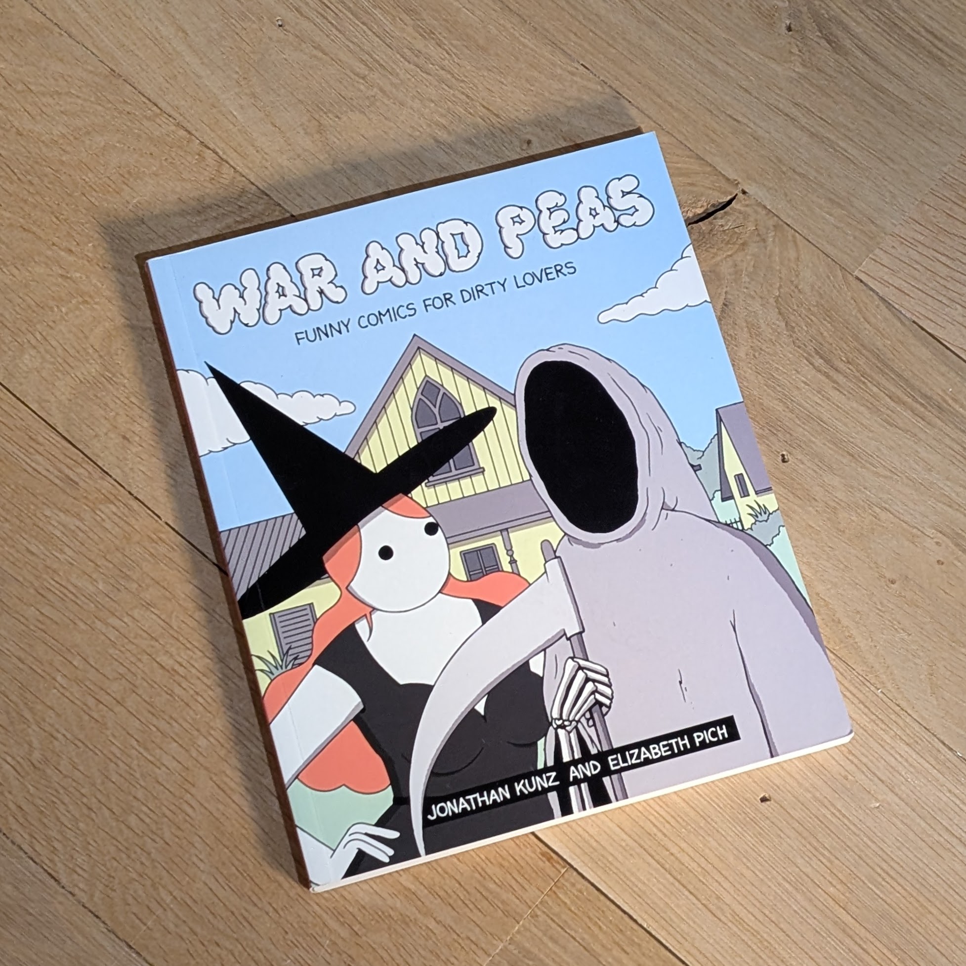 From the creators of the hugely popular Instagram comic War and Peas, this offbeat four-panel comic features a dark, fairy-tale aesthetic and a twist ending each time.War and Peas: Funny Comics for Dirty Lovers combine twisted humor with a beloved cast of characters including the grim reaper (seen here as an unintentionally lethal man of leisure), a robot in hopelessly in love with his scientist creator, and a promiscuous yet self-assured witch. Unlike most webcomic collections, this one tells a story using dozens of never-before-seen comics to chronicle the lives of several different characters and their follies during life, death, and their glorious reunions in the afterlife (and the after-afterlife).