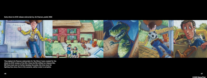 Relive the magic of meeting Woody, Buzz, Andy, and the rest of the characters from Pixar’s first feature film for the first time. Follow along in the colorscripts as the unforgettable story arc unfolds across four Toy Story films and discover rare visual development art that brought such beloved characters to life.