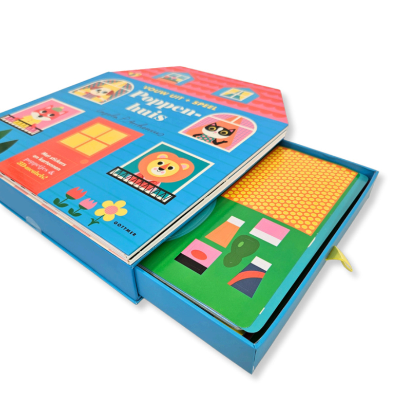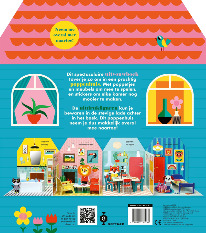 'Poppenhuis' is een uniek boekconcept: een compact, uitvouwbaar poppenhuis in de kenmerkende stijl van Ingela P Arrhenius. Met vier kamers, 3D-meubels en leuke poppetjes om mee te spelen. Breng de figuurtjes tot leven, zet de meubels in elkaar en versier het huis met de kleurrijke stickers. De keuken, badkamer, woonkamer en slaapkamer kunnen helemaal naar eigen wens ingericht worden. En daarna? Urenlang speelplezier! Dit poppenhuis-boek is ideaal voor onderweg of als je niet veel ruimte hebt. Alles past netjes in de stevige lade, zodat er altijd tijd is om te spelen.