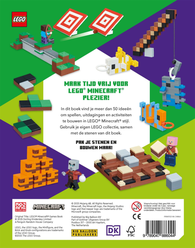 'LEGO® Minecraft® spellenboek' is het ultieme creatieve boek voor kinderen vanaf 6 jaar die dol zijn op LEGO® en Minecraft®. Met maar liefst 50 inspirerende ideeën vol spellen, puzzels en uitdagingen, kunnen jonge bouwers hun eigen wereld ontwerpen en ontdekken. Bovendien krijgen kinderen er 61 echte LEGO®-blokjes in Minecraft®-thema bij, zodat ze meteen aan de slag kunnen met hun eigen LEGO®-collectie. Van een zelfgemaakt schaakbord tot sudoku en boter, kaas & eieren, dit boek biedt voor ieder wat wils om mee te bouwen en te spelen.