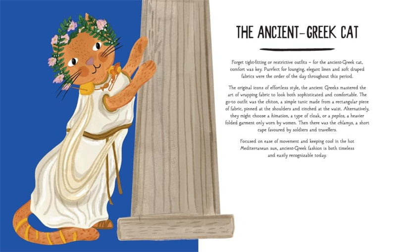 From the bejewelled Byzantines to the grunge era of the 1990s, A History of Fashion in 21 Cats takes the most iconic eras in fashion history and distils each of them into quirkily illustrated cat form.