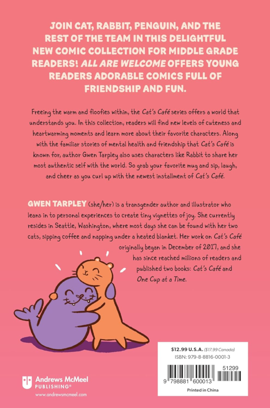 The comic book equivalent of a cozy blanket, All Are Welcome takes you by the hand and carefully guides you away from all the darkness in life. Freeing the warm and floofies within, All Are Welcome offers a world that understands you. In this new comic collection for middle grade readers, fans will find new levels cuteness, heartwarming moments, and learn more about their favorite characters. Along with the familiar stories of mental health and friendship that the Cat’s Café series is known for, author Gwen Tarpley also uses characters like Rabbit to share her most authentic self with the world. So, grab your favorite mug and brew, and sip, laugh, and cheer as you curl up with All Are Welcome: A Cat's Café Collection.