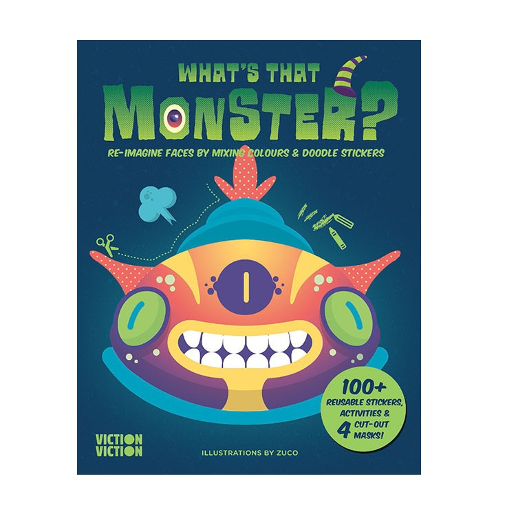 In 'What's That Monster?' kun je je te buiten gaan aan het designen van MONSTERS! Je vindt 4 voorgeperforeerde maskers, 6 stickervellen en 40 bladzijden aan spelletjes en uitdagingen om tot dat ene angstaanjagende monster te komen. De opdrachten zijn in het Engels dus hulp bij de jongsten onder ons is gewenst.