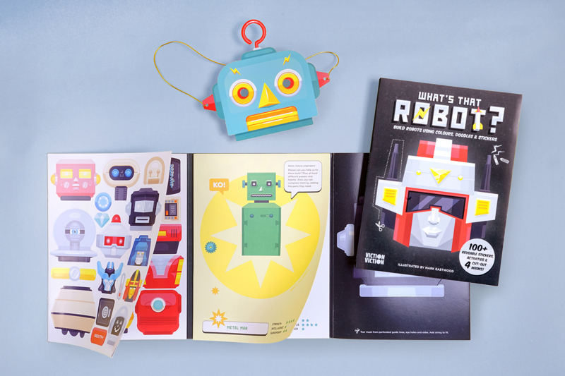 In 'What's That Robot?' ontwerp jij jouw eigen robot. Aan de hand van 4 voorgeperforeerde maskers en 6 stickervellen samen met 40 pagina's aan raadsels, spelletjes en andere leuk en origineel vormgegeven opdrachten. De opdrachten zijn in het Engels dus een beetje hulp bij de jongsten onder ons is gewenst.