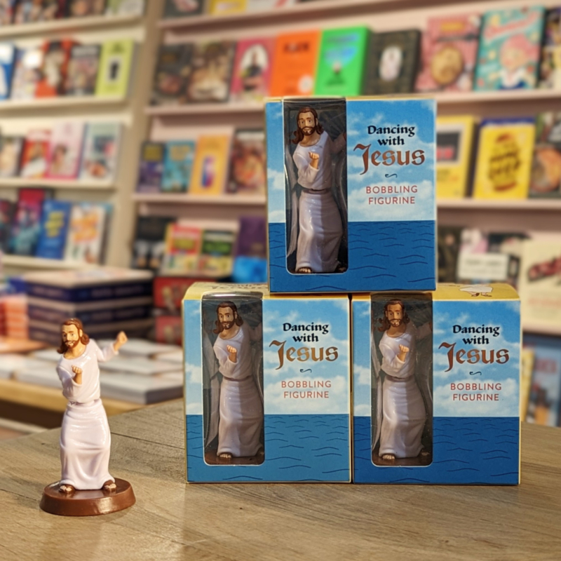 Jesus got some moves. En hij laat het aan je zien in de vorm van dit bobbelende figuur. Inclusief een mooie achtergrond in kartonvorm en een begeleidend boekje waarin de moves nog eens haarfijn aan je worden uitgelegd. Peace!