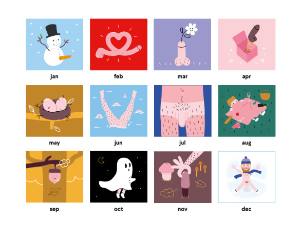 Roger van Dicks Don't Lie heeft het voor elkaar gekregen. Van taboe en het verdomhoekje naar speelse kunst. De piemel hoort te shinen. Net als harige billen, borsten en het ongeschoren been. Zijn kijk op de wereld heeft hij vertaald naar heerlijke producten zoals deze hilarische en ever present verjaardagskalender