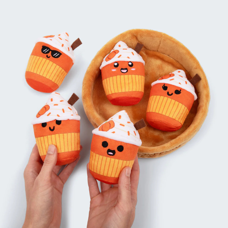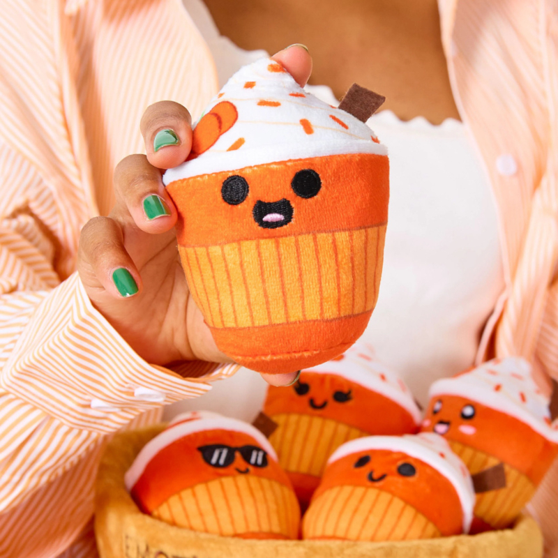 Gift cozy comfort with this unique coffee lovers dream, Emotional Support Latte featuring 5 adorable plush lattes. Perfect for all ages, these cute characters bring joy and stress relief. These adorable plush characters come nestled in a snug plush basket.